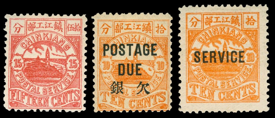 1894-96年鎮江書信館第一二版新票各一套,及其加蓋欠資新票13種,加蓋公事新票7種,整體顏色鮮豔,齒孔完整,上中品