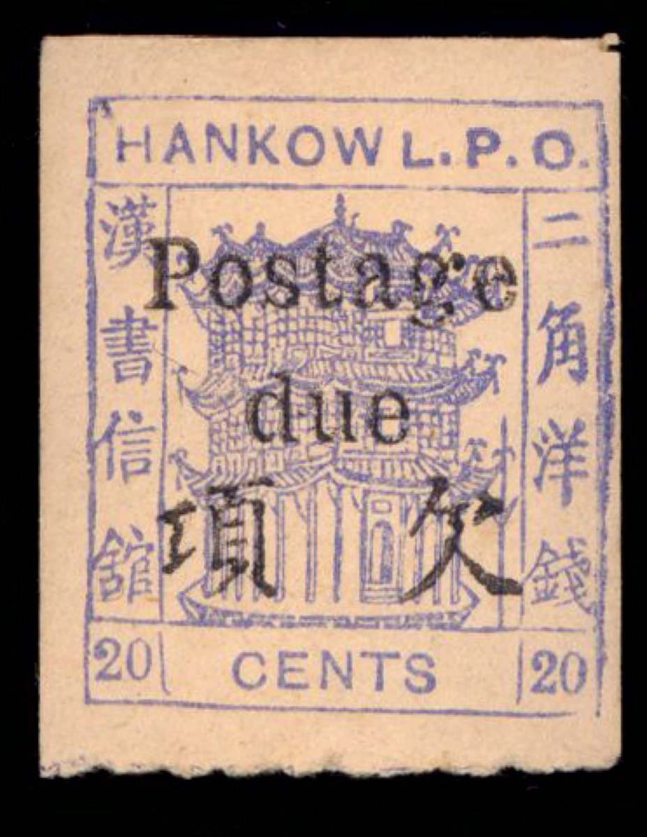 1894年漢口書信館20分第二次加蓋改作欠資新票1枚,票面顏色鮮豔,原膠,上中品