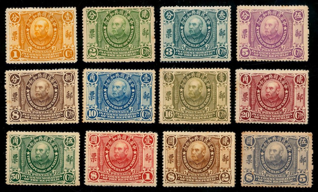 1912年12月15日共和紀念票全套十二枚, 原膠輕貼, 品相中上.