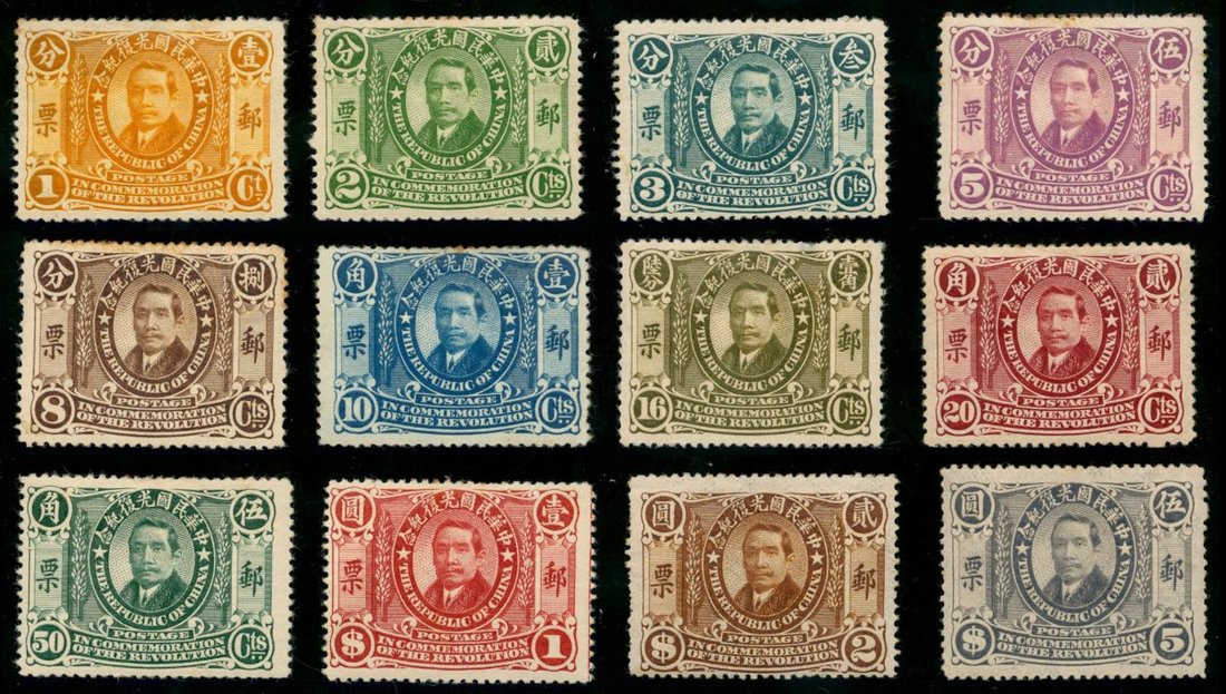 1912 (15 Dec.) The Revolution Commemorative Issue, full set of 12, original gum with lightly hinged. Fine.