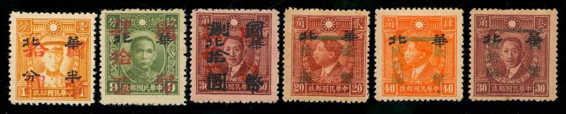 1945 (9 Oct.) Kaifeng Surcharge of "National Currency", full set of three. 1945 Kiaotung Surcharge of "National Currency", $10, $40 and $80 (on 30c.). Gum yellowing.