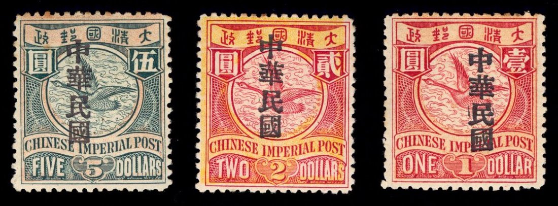 1912年3月蟠龍票加蓋宋體"中華民國" 全套十五枚, 原膠輕貼, 品相中上.