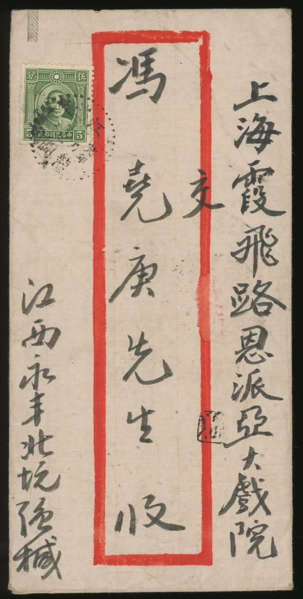 1939 (19 Jan.) to Shanghai red band cover, bearing Dr.sun 5c. tied by Lungkang c.d.s., on the reverse with Shanghai arrival c.d.s. (31.1). Fine.