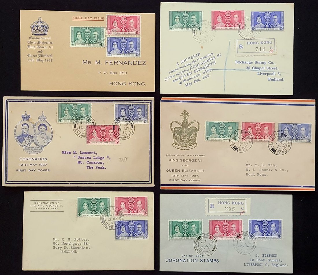 1937 (12 May) six different design of KG VI Coronation F.D.C. (Including three registered cover) Very interesting collection