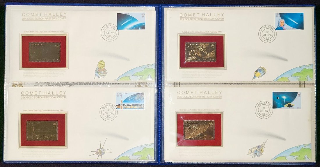 1986 (26 Feb.) Comet Halley 22K Gold Edition full set of four First Day Covers in original album with two certificate.
