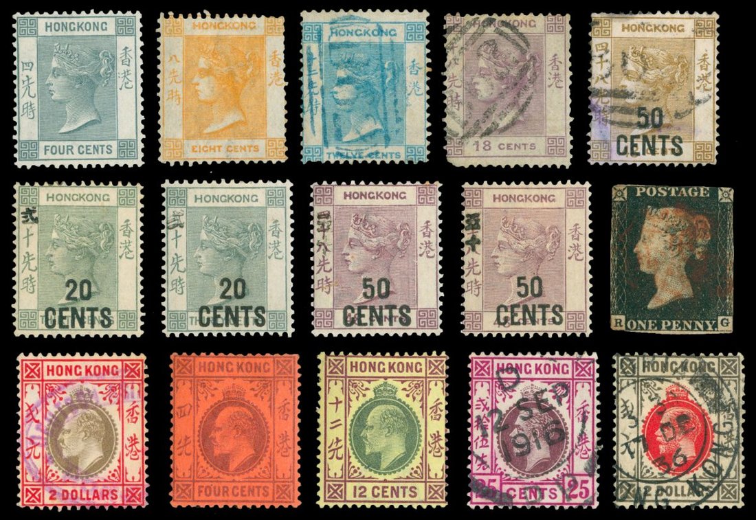 1880-1904 a group of 99 of QV and KE VII used and unused issues. Including 1891 Surcharged by handstamp with Chinese character issue 20c. on 30c., 50c. on 48c. two unused; also with a used Penny Black, letter R-G.