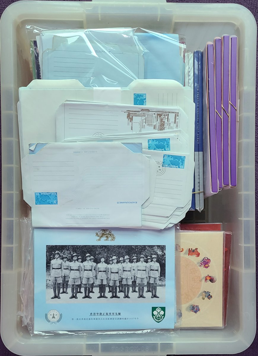 1970s-90s Hong Kong Air Letters (Amrogrammes), Picture Postcard, Postal Stationery Issues and Stamps Year Book. There are close to a thousand pieces in total. Please Preview.