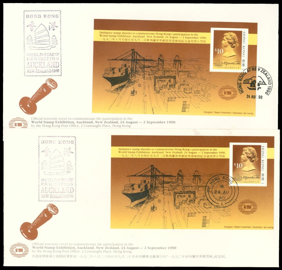 1990 (24 Aug.) about 180 Miniature Sheet of F.D.C. of Hong Kong's participation in the World Stamp Exnibition, Auckland , New Zealand. Tied by Hong Kong c.d.s.or Hong Kong at New Zealand 1990 c.d.s.