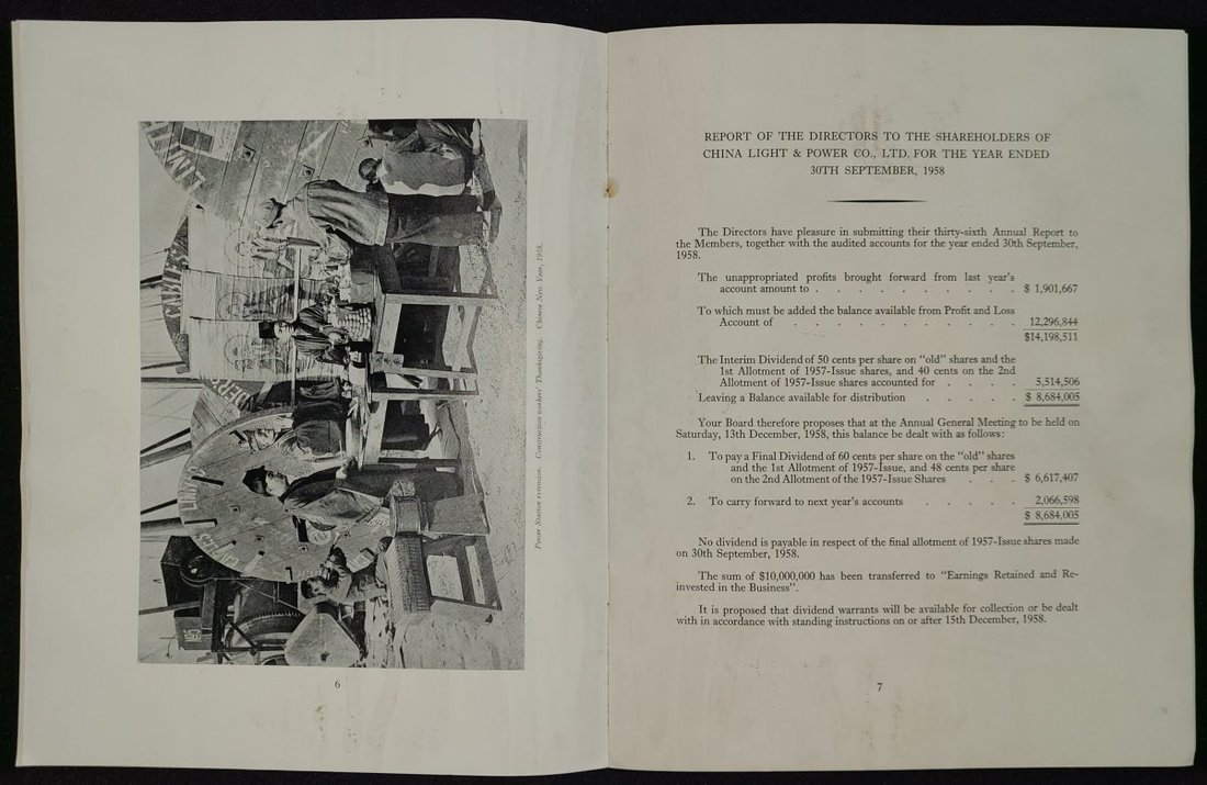 1958 CHINA LIGHT & POWER COMPANY LIMITED Thirty -Sixth Report of Board o Directors Chairman's Review & Statement of Accounts