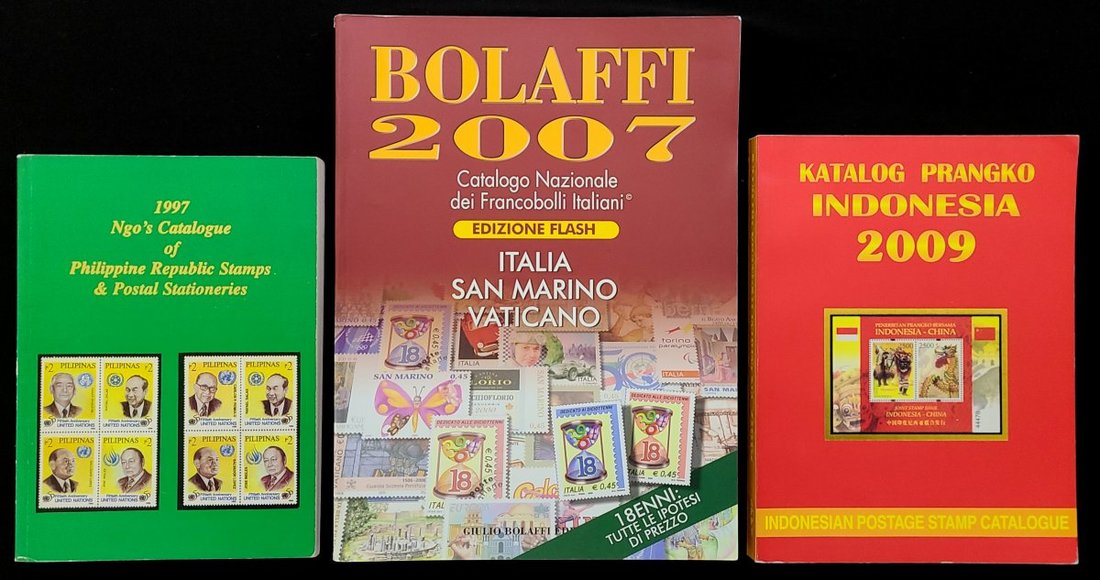 1997 The Philippine stamp catalog, the 2007 Italian stamp catalog and the 2009 stamp catalog.