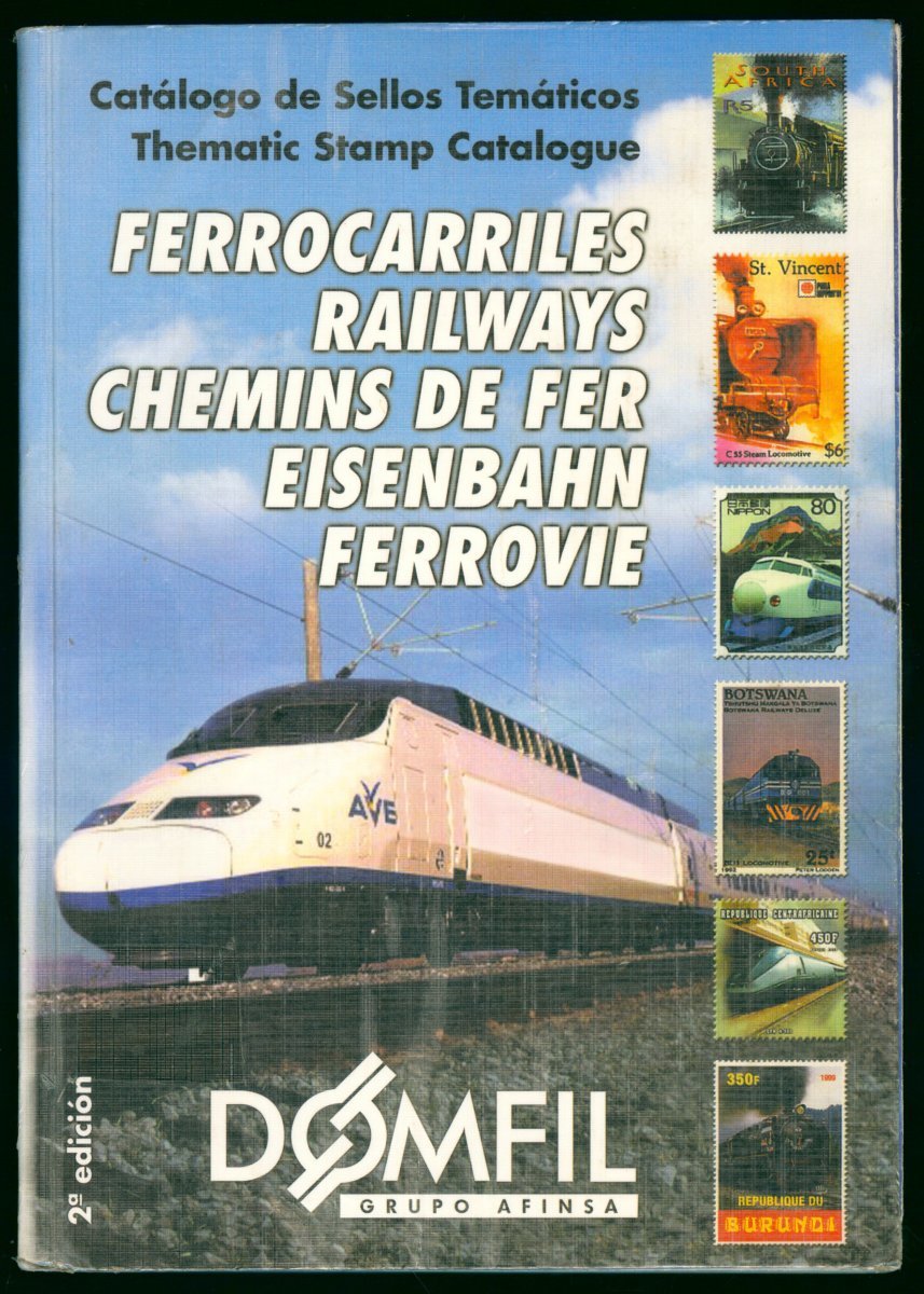 1999 The catalogue of stamps on trains, the entire book is printed in foreign languages ??and in color. There are traces of writing.