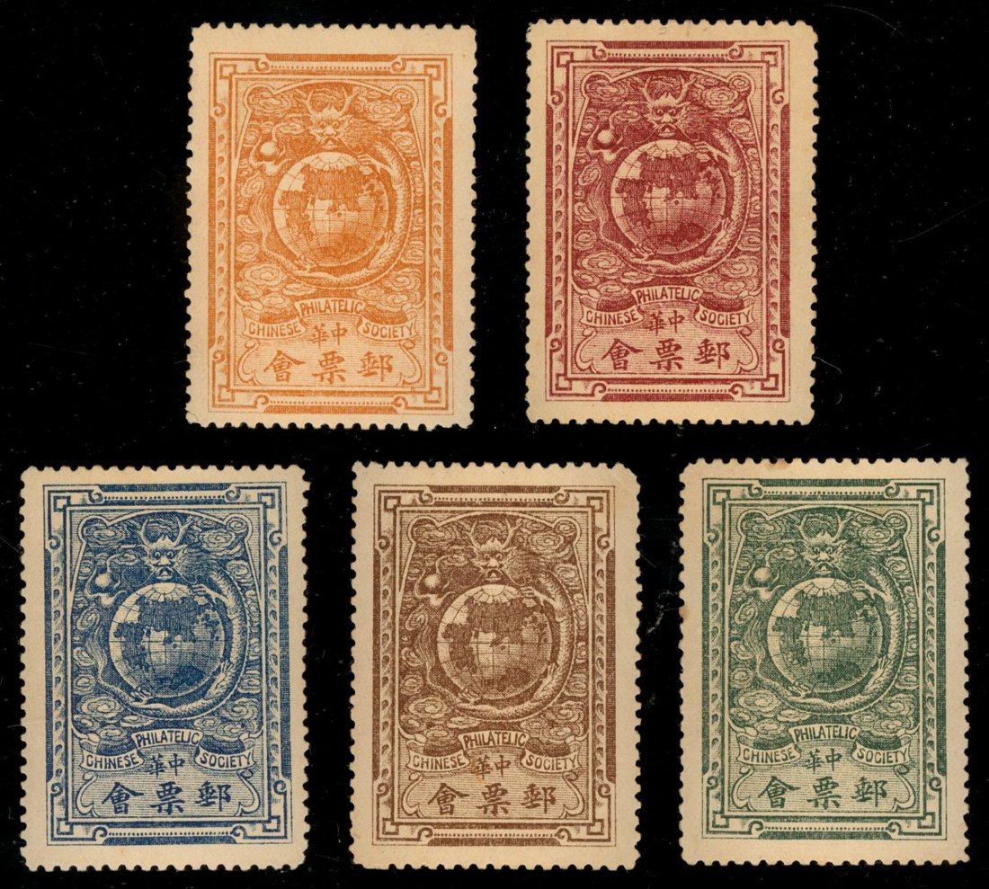 1935 Chinese Philatelic Society, seal label, five different colours,unused.