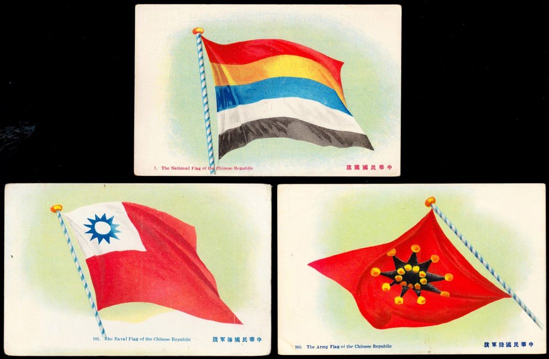 1910s three postcards of the Chinese flag, the army flag and the navy flag were printed in Shanghai.