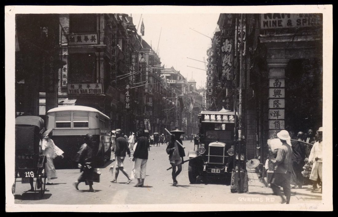 1903s postcard of street scenes of Queen's Road, Hong Kong Island. t can be seen that the advertisement of Sincere Co. on the truk, and and the Ying Wah Studio sign.