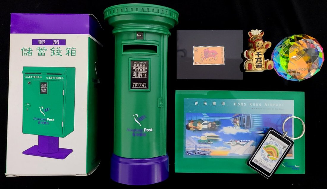 1990s-2000s A batch of postal souvenirs produced by the Hong Kong Post Office, including square and round post boxes, paperweights, crystal bases and keychain, etc., about 20 pieces.