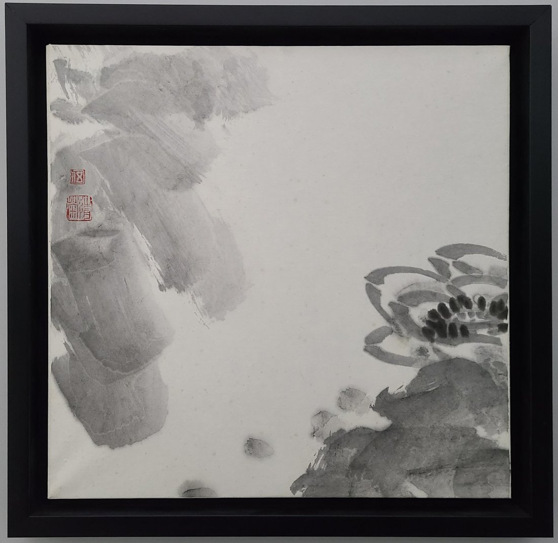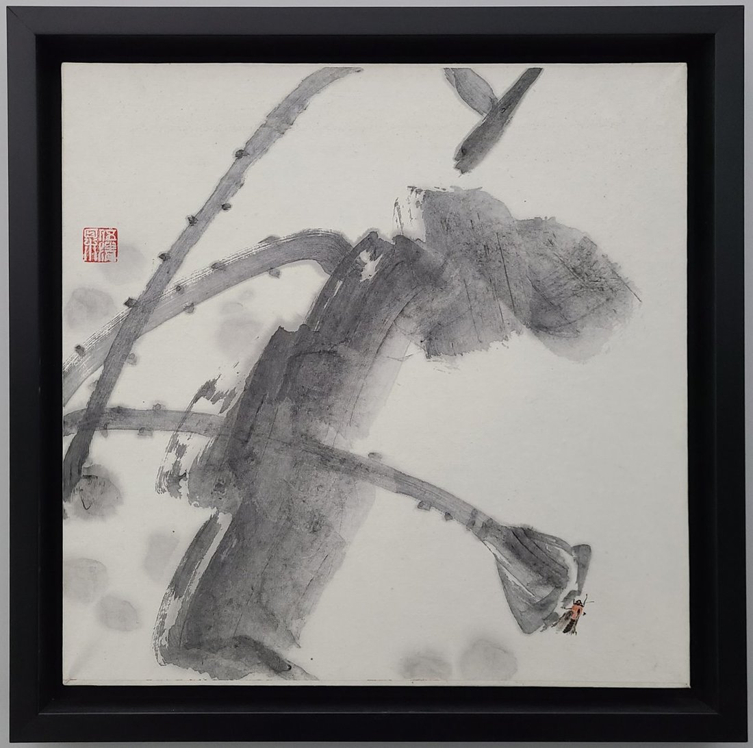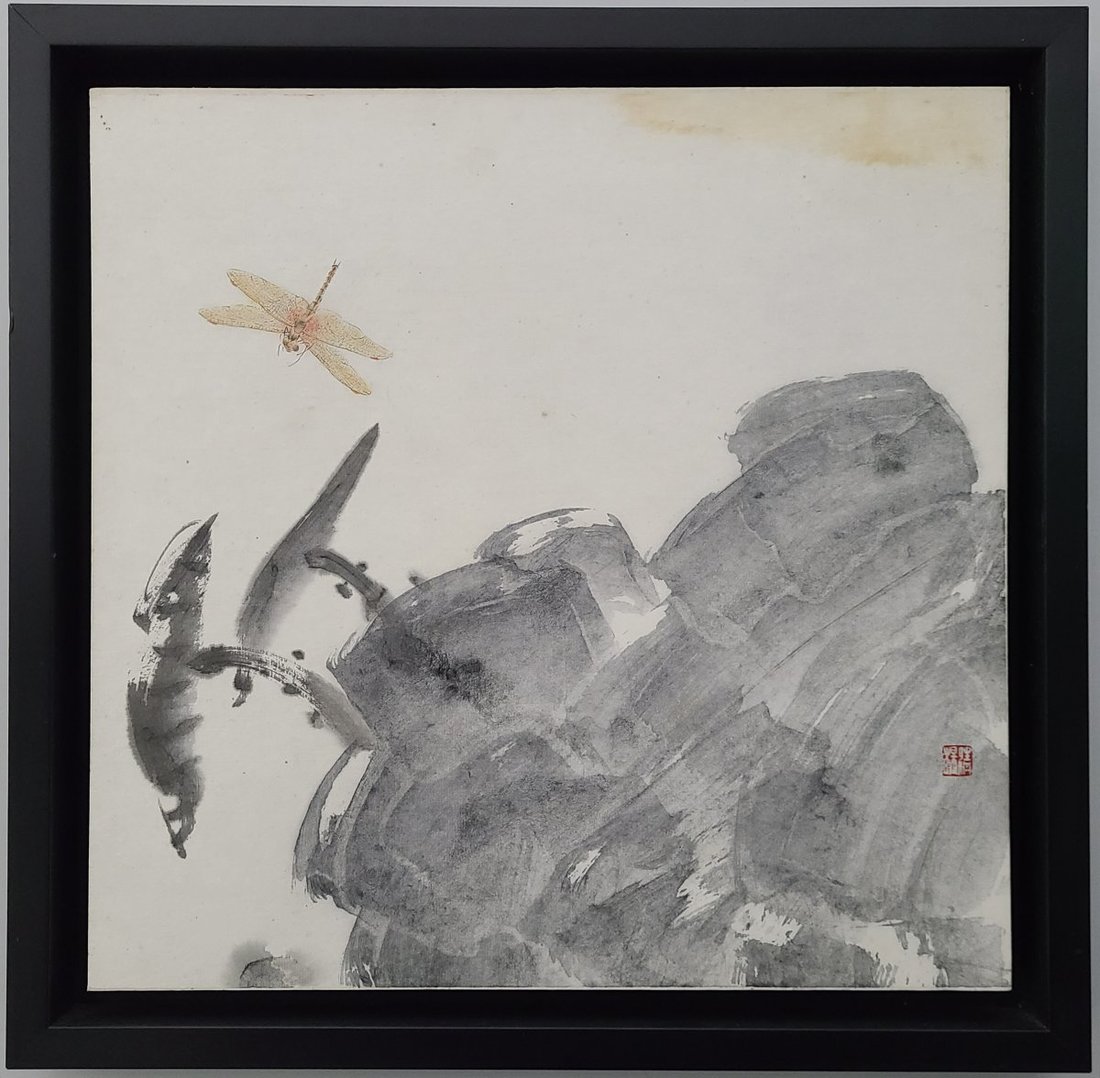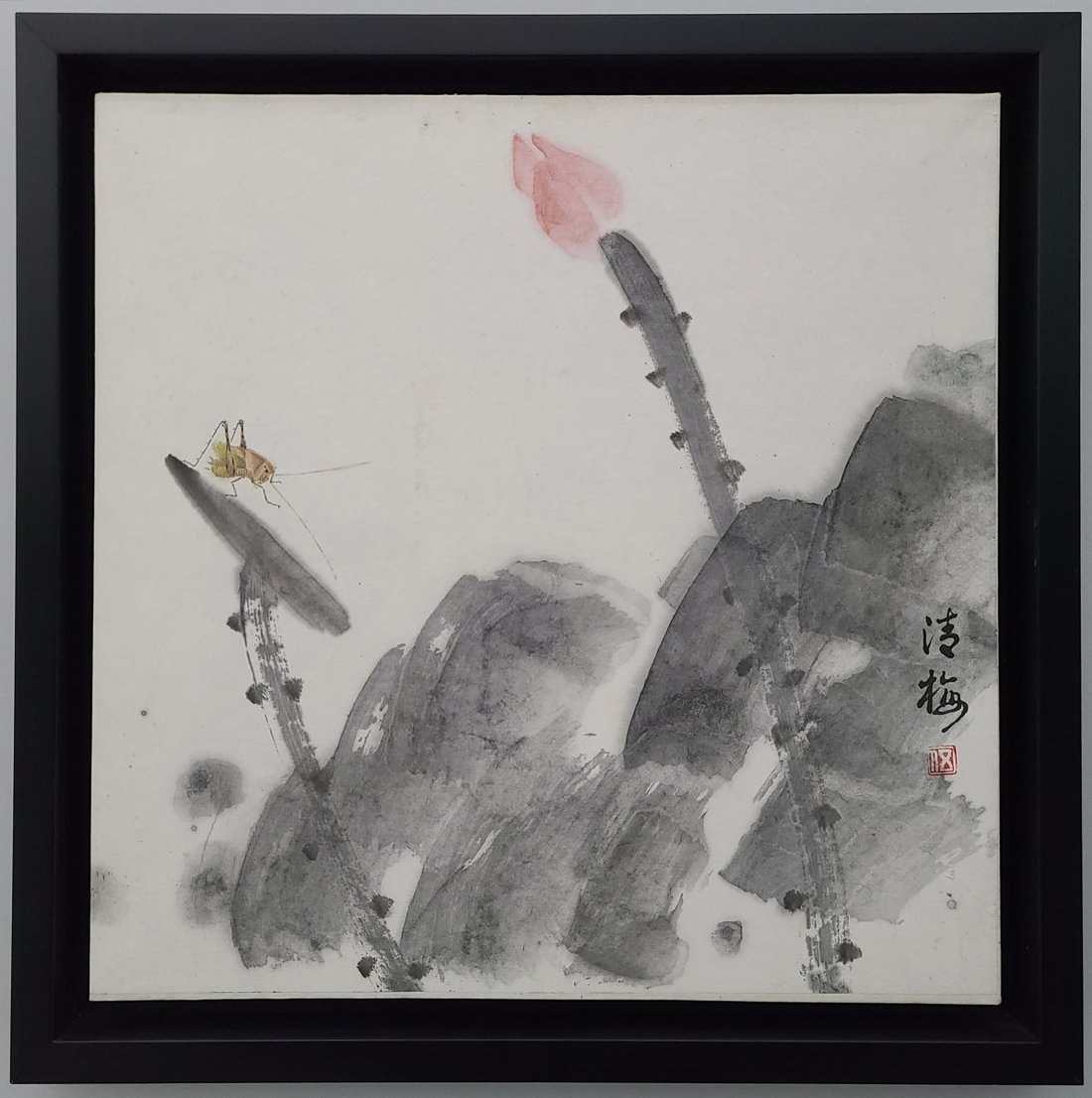 2000年代水墨荷花與昆蟲四幅, 己裝裱. 畫家為現代畫家吳清梅, 廣東順德人. 作畫畫清麗脫俗. 每幅尺寸: 連框40.5x40.5cm