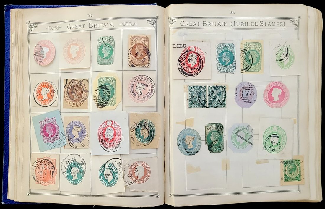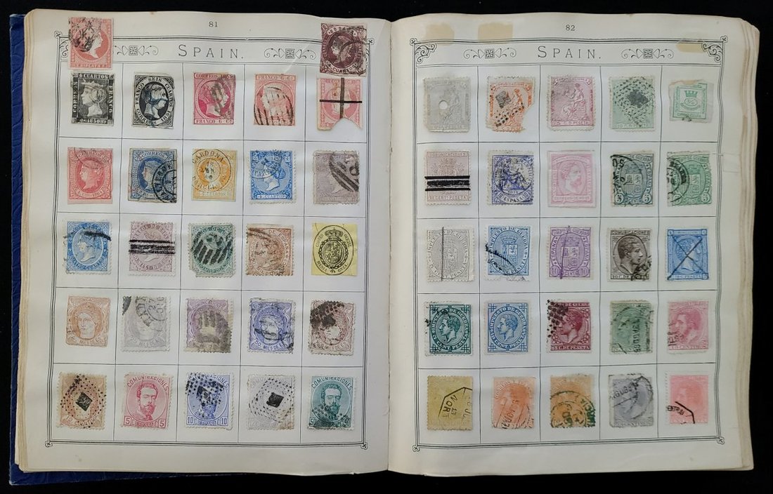1890-1910年代世界各國郵票集藏冊, 內含各國古典郵票過千枚.