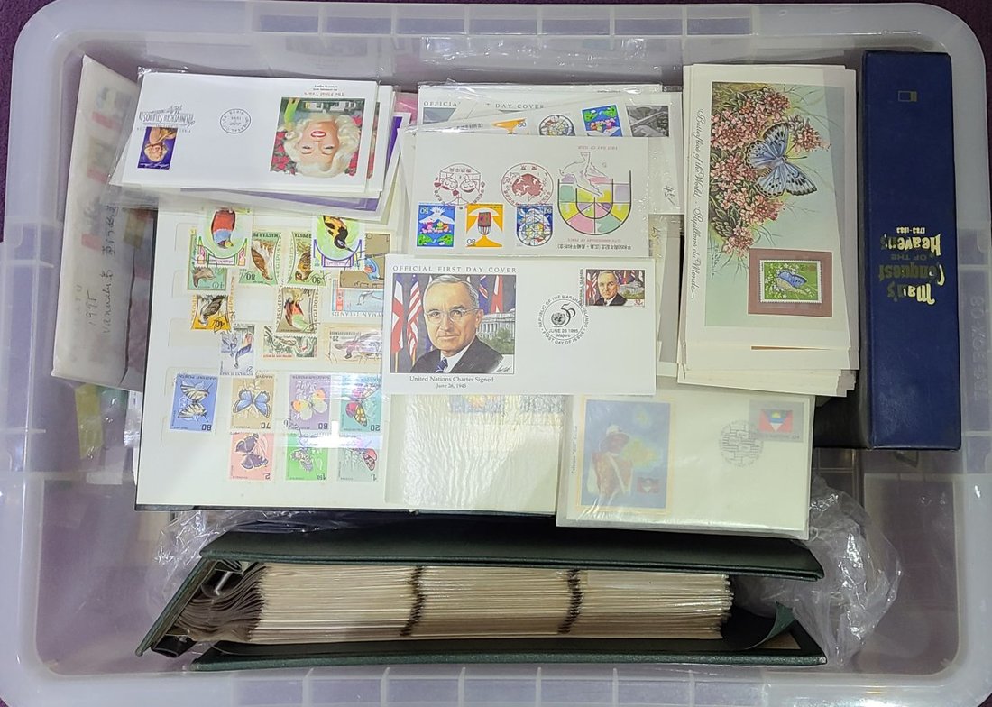 1960s-90s a hunders of stamps,  F.D.C. and other philatelic items from all over the world in a big box. Please preview.