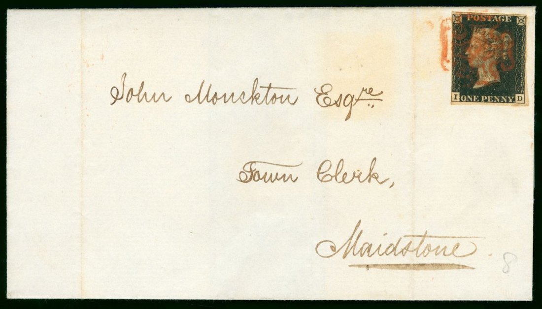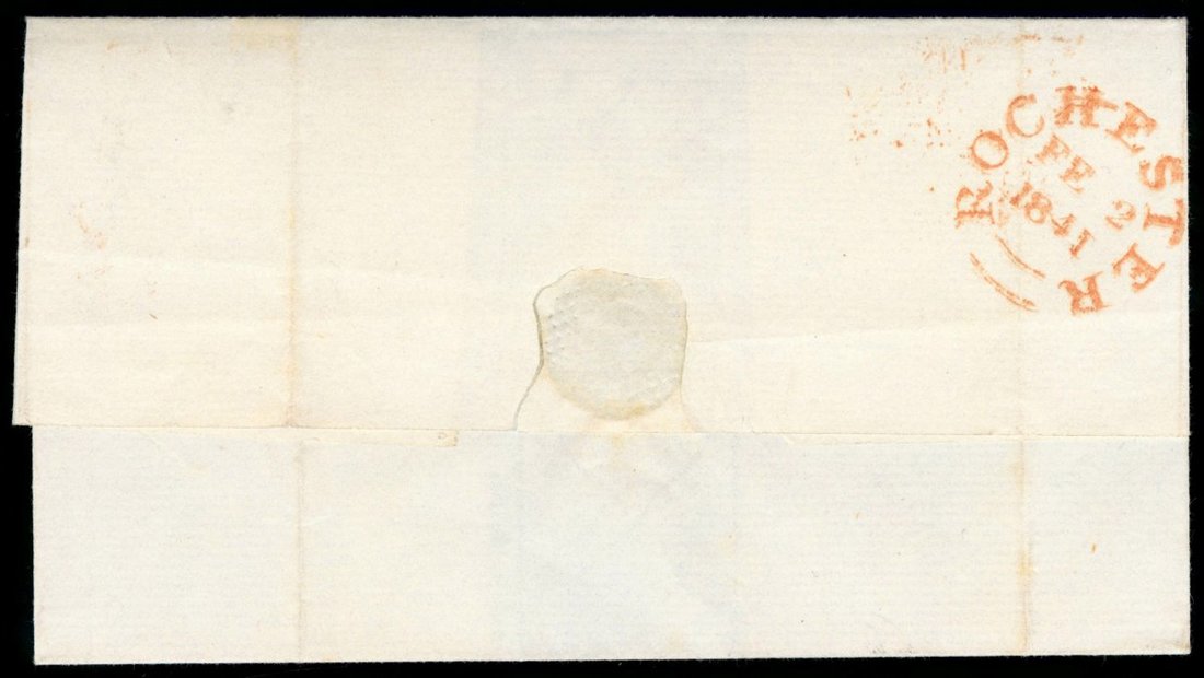 1841 (Feb.) Black Penny lettersheet used in England cancelled by Maltese Cross mark in red, showing "ROCHESTER" (2.2) c.d.s in red.