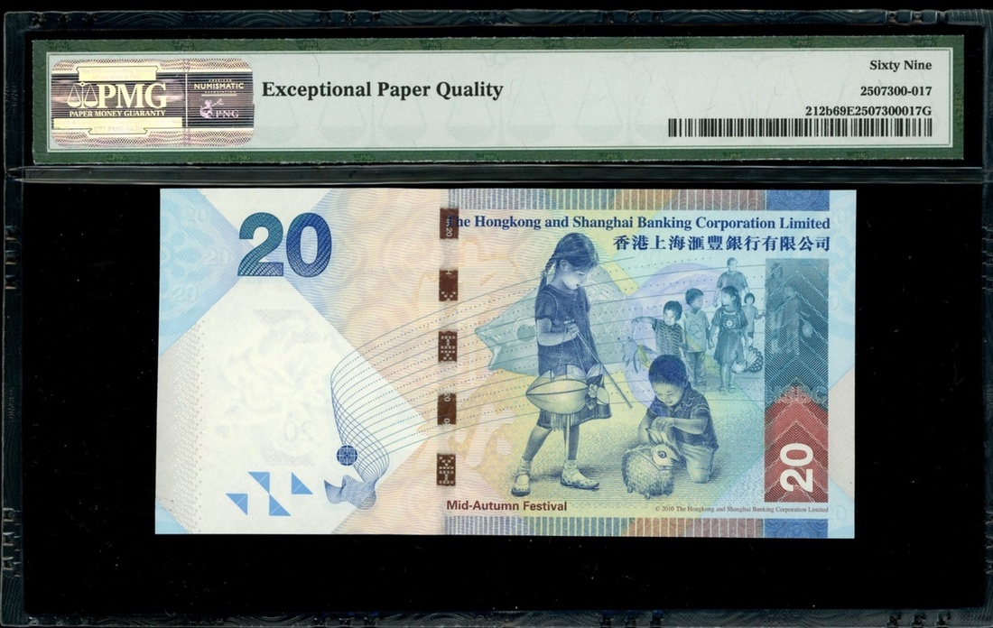 The Hongkong and Shanghai Banking Corporation, $20, 1.1.2012, low serial number FS000017, (Pick 212b), PMG 69EPQ Superb Gem Uncirculated.