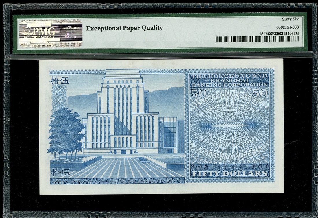1982年香港匯豐銀行 50元,編號 A/5 072361,PMG 66EPQ