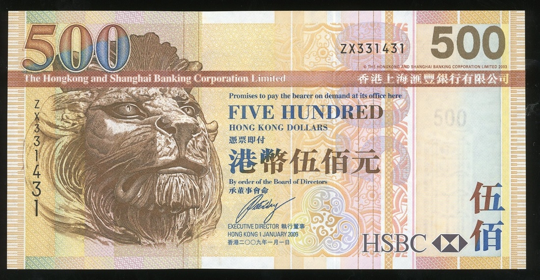 The Hongkong and Shanghai Banking Corporation, $50, 1.7.2003, $100 and $500, 1.1.2009, replacement serial numbers ZZ000297, ZV516251 and ZX331431, (Pick 208a*, 209f*, 210f*), all uncirculated (3)