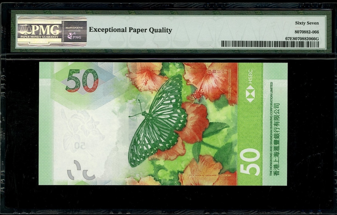 2018年香港匯豐銀行 50元,趣味號 AY100000,PMG 67EPQ