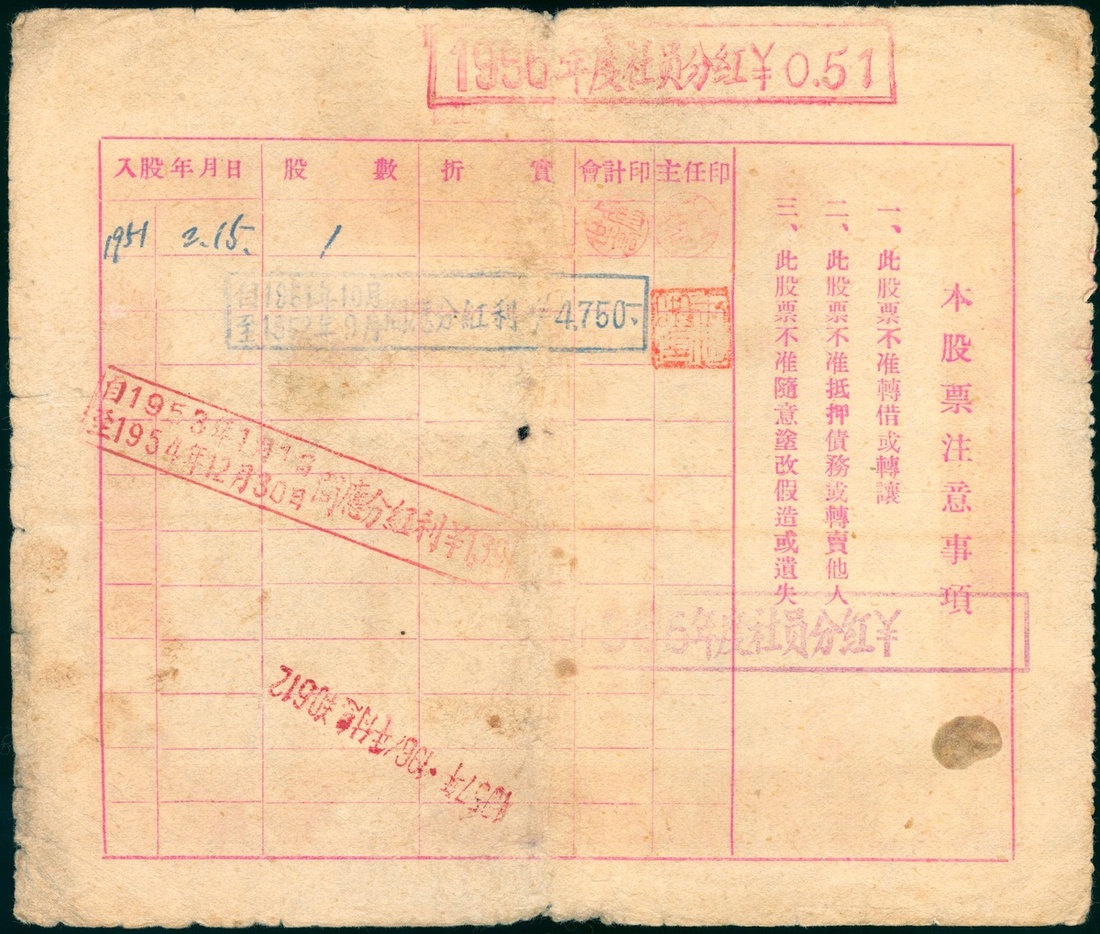 1951年旅大市營城子區磊山供銷合作社股票二萬圓,GEF品相