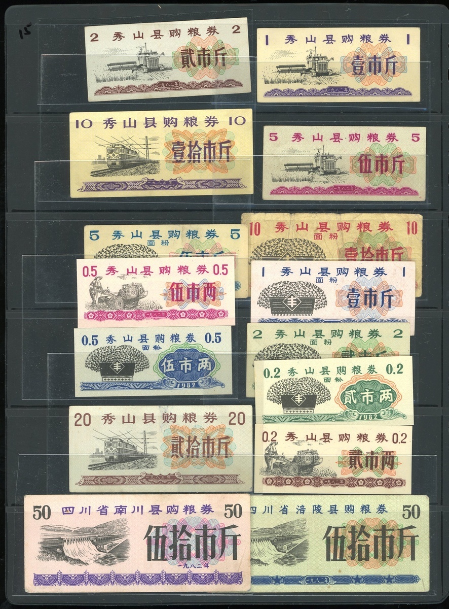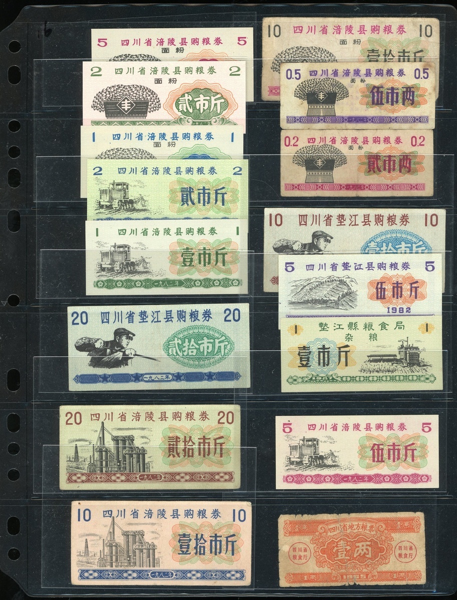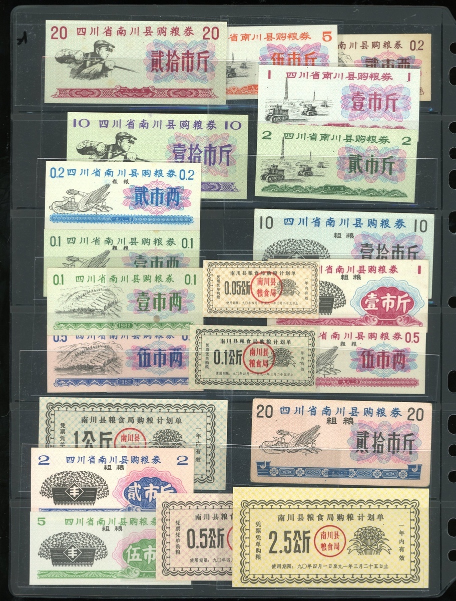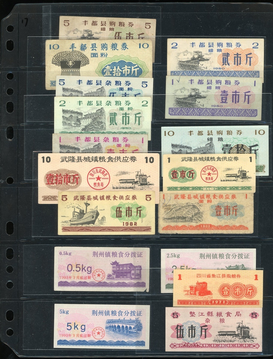 People's Republic of China, a group of approximately 138 coupons for food and grain, 1960's to 1990's, circulated in Sichuan, Hunan and Hubei provinces,