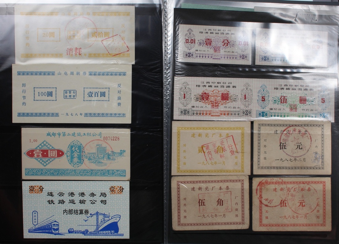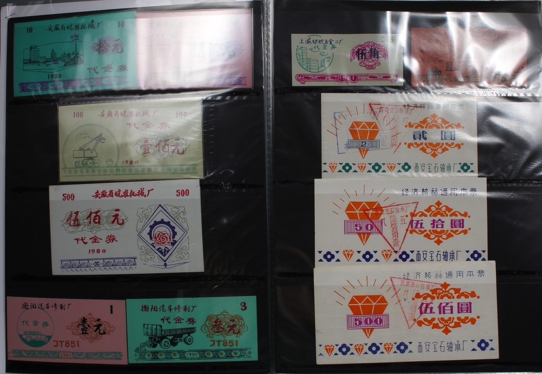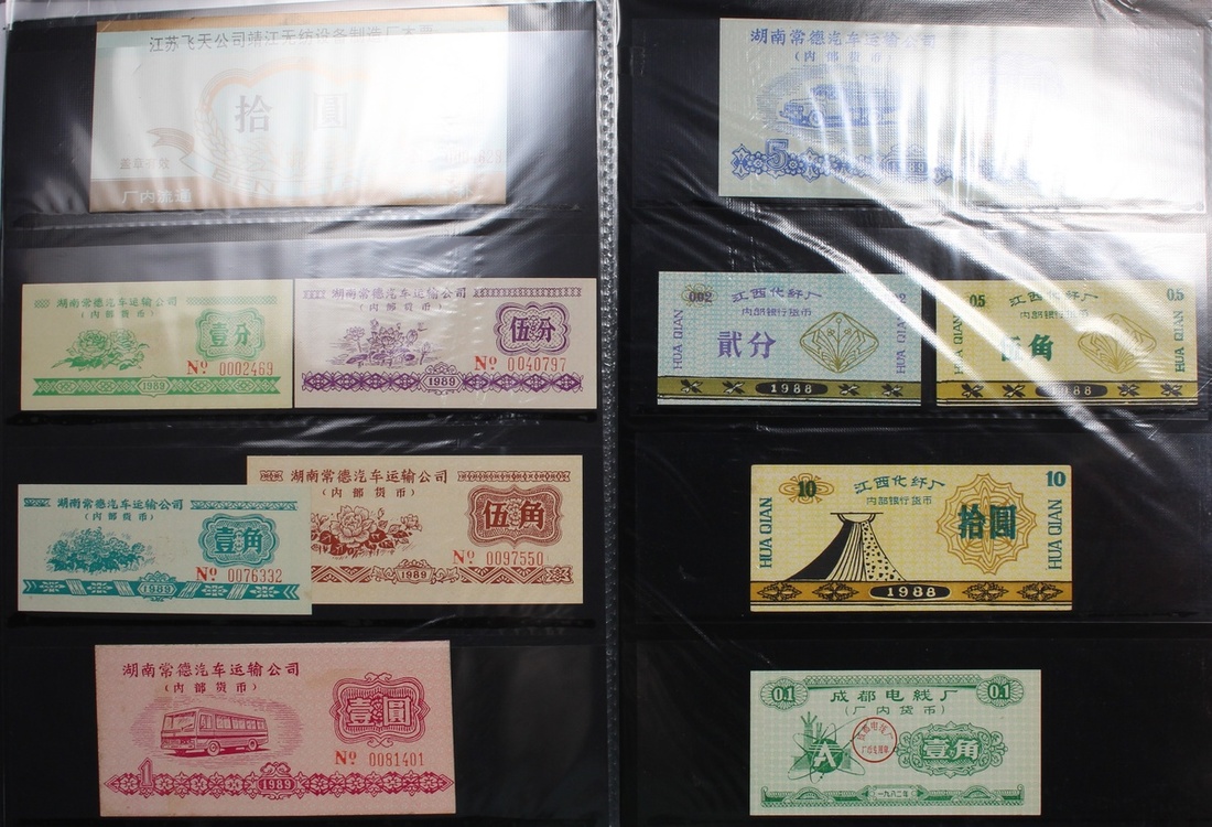 People's Republic of China, a large assortment of 107x local/regional payment currencies and credit notes, including various 'Factory Banknotes' which were printed and circulated locally,
