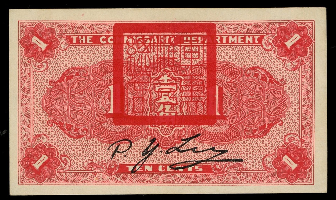The Commissariat Department, 10 cents, 1925, remainder, red and light blue, ship at centre,