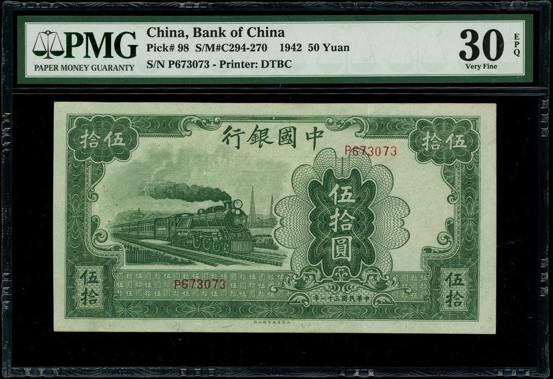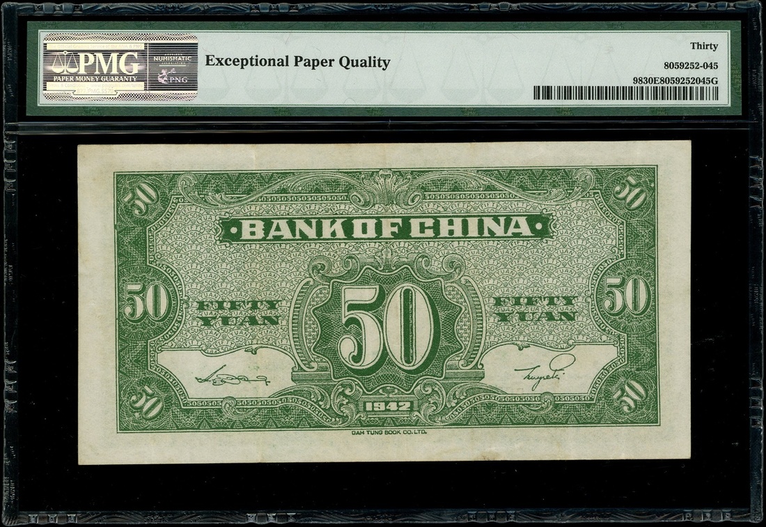 Bank of China, 50 Yuan, 1942, serial number P673073, (Pick 98), PMG 30EPQ Very Fine