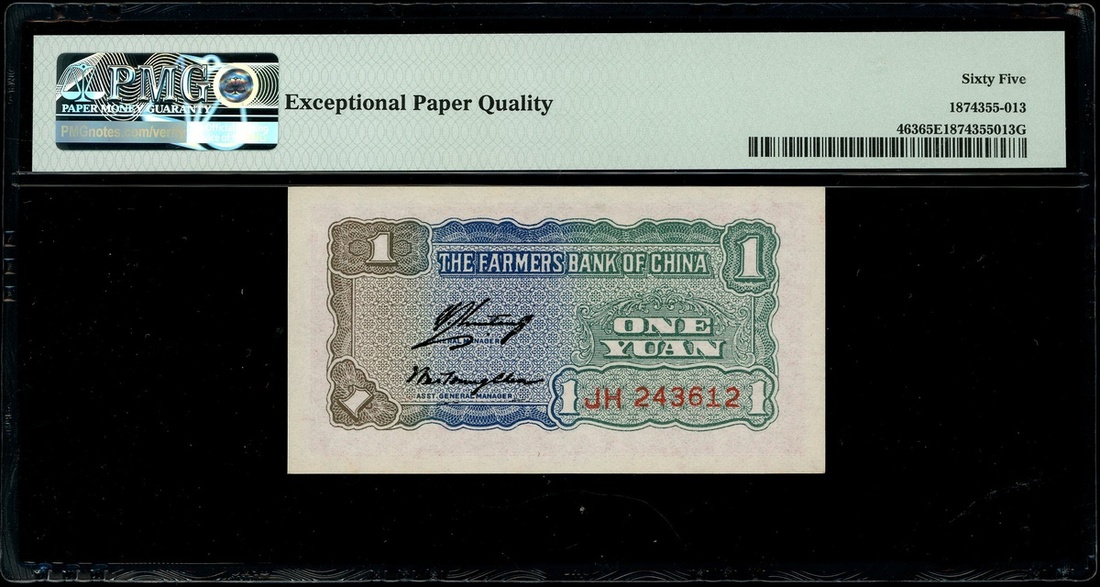 民國二十六年(1937)中國農民銀行一角及二角,及二十九年(1940)1元,編號LX 260393,GF343393 及JH243612,均PMG 65EPQ