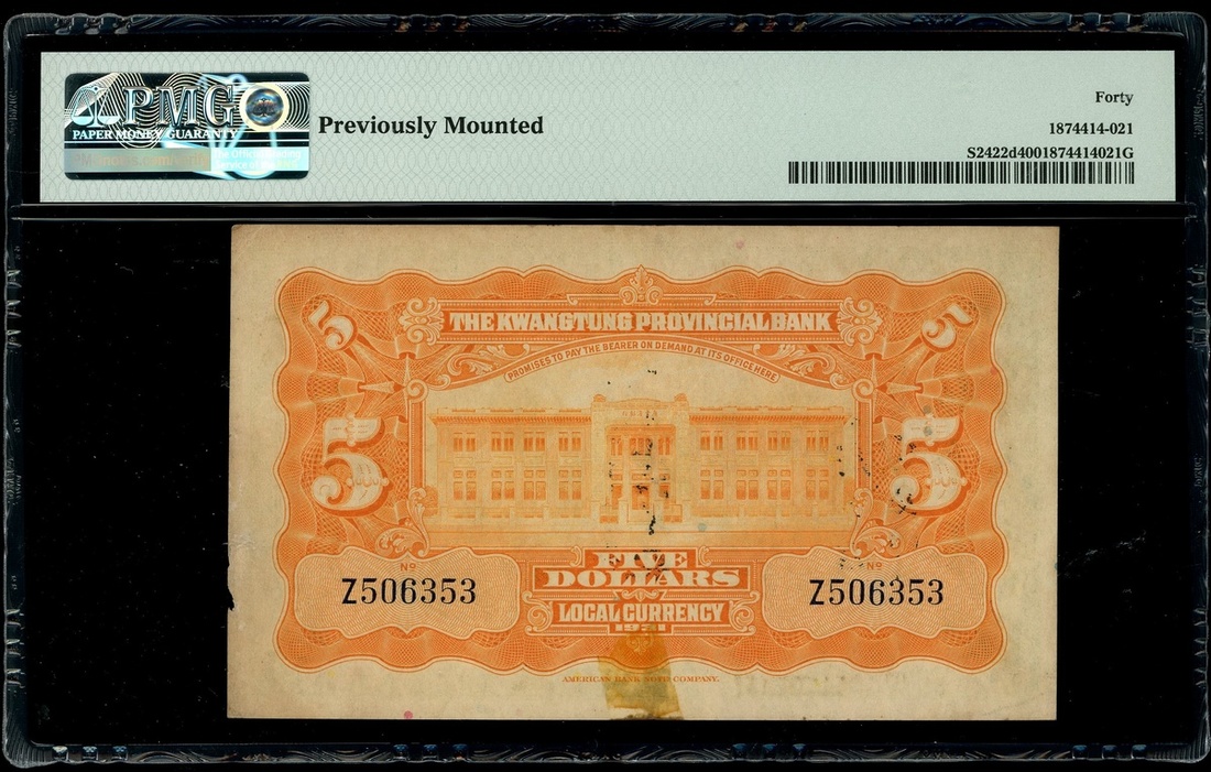 民國二十年(1931)廣東省銀行5元,編號Z506353,PMG 40