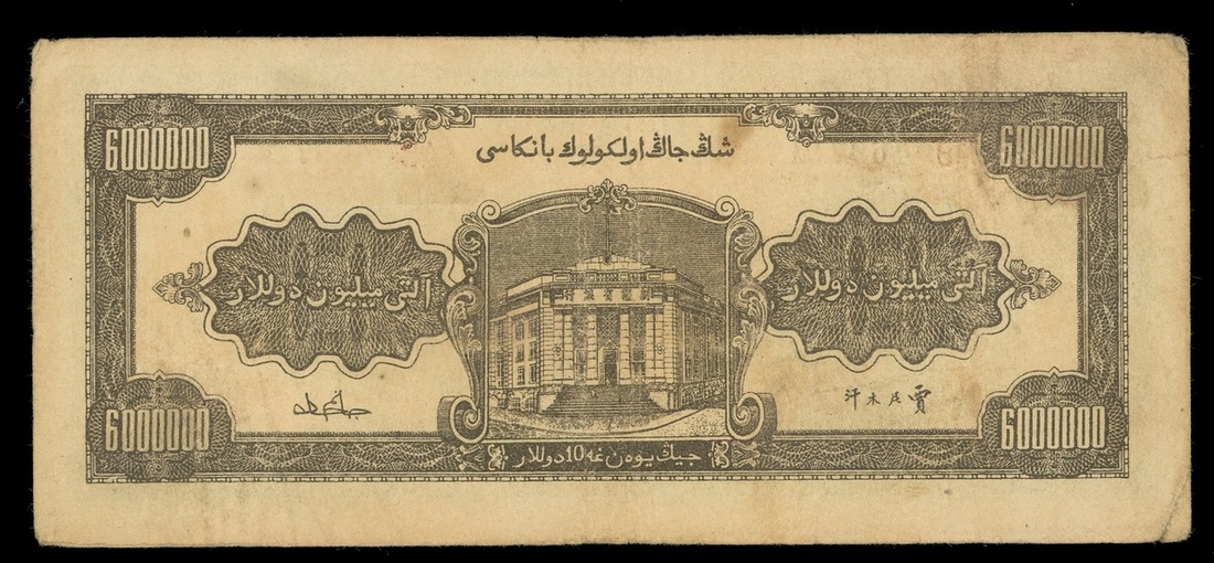 Sinkiang Provincial Bank, 6 million yuan, 1948, serial number AB469711, (Pick S1788), foxing, about very fine.