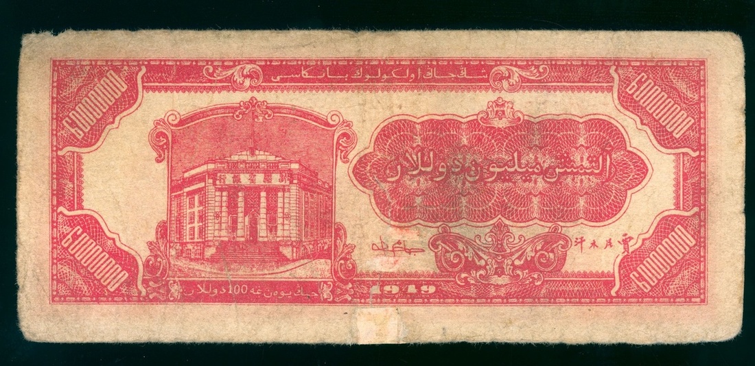 Sinkiang Provincial Bank, 60,000,000 yuan (=100 Gold Yuan), 1949, serial number AE431594, (Pick S1791), fine, ragged edges.