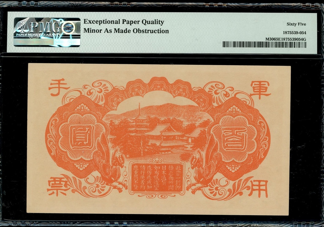 Japanese Military, 100 Yen, ND (1945), ERROR NOTE, block serial number 17, minor as made obstruction,