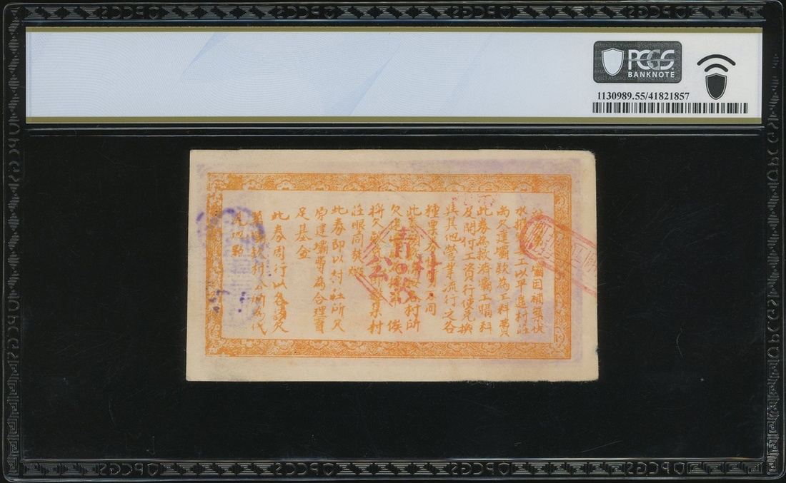 1937年汾河第三壩工程救濟券2角,編號36989,PCGS Banknote 55
