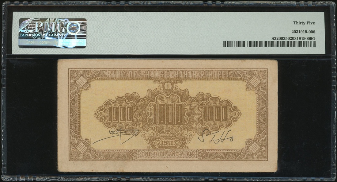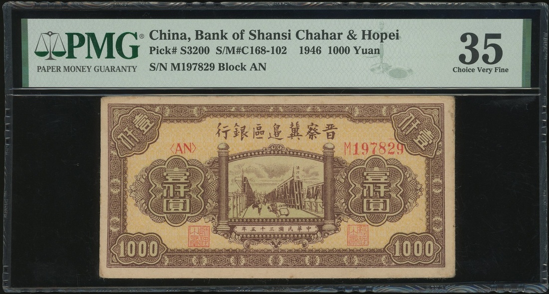 1946年晉察冀邊區銀行1000元,編號M197829,PMG 35