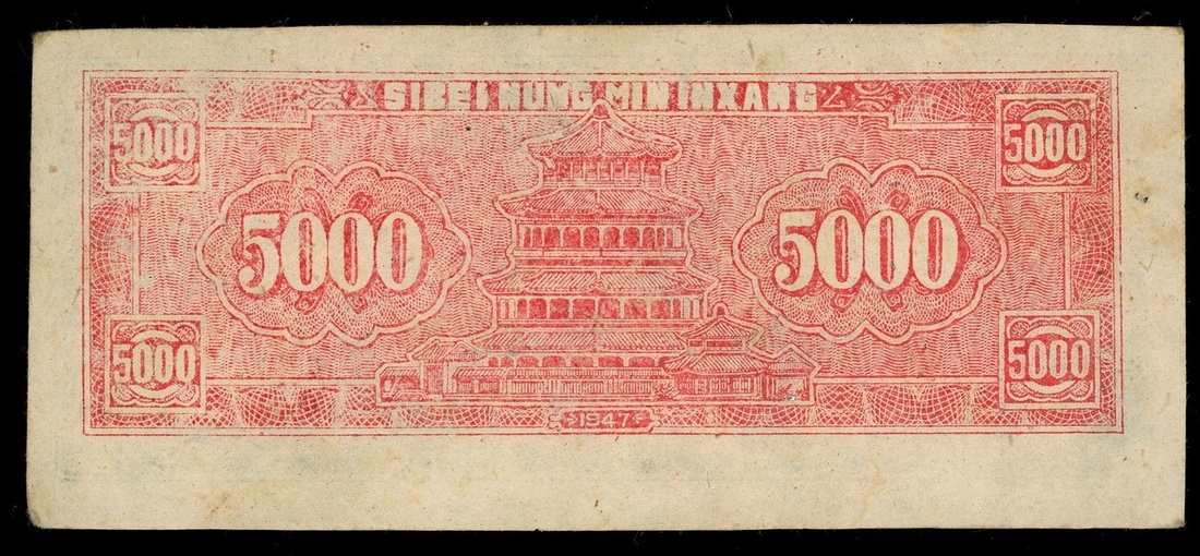 1947年西北農民銀行5000元,編號853376 BF,AEF,紙角鈍化,輕微污漬