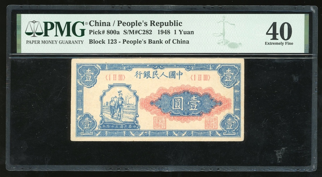 People's Bank of China, 1st series renminbi, 1948, 1 yuan, 'Farmer and Factory Worker', block serial I II III,