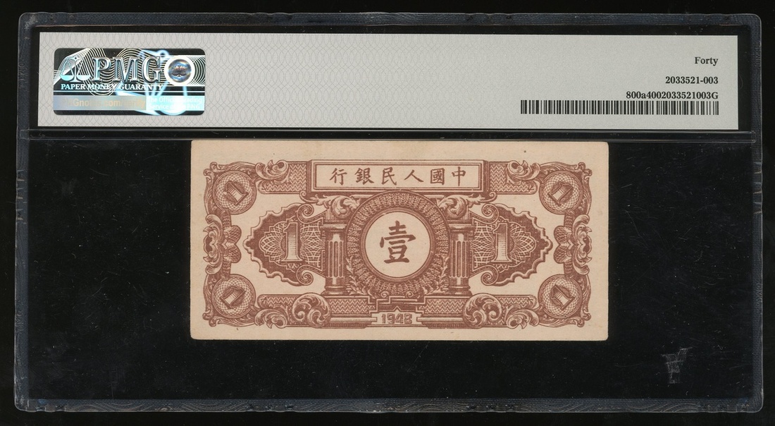 1948年中國人民銀行第一版人民幣5元「工農」,編號I II III,PMG 55EPQ