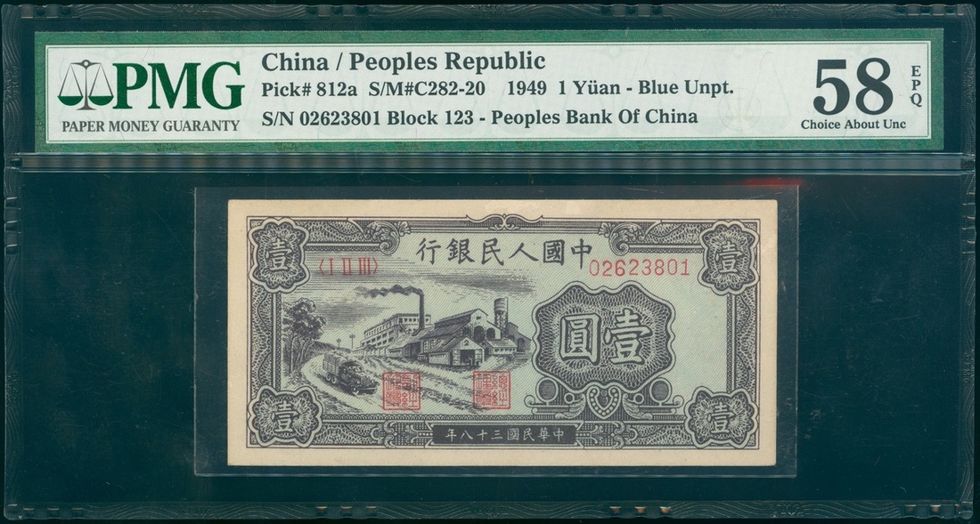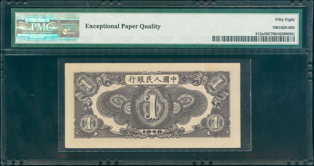 1949年中國人民銀行第一版人民幣1元「黑工廠」,編號I II III 02623801,PMG 58EPQ