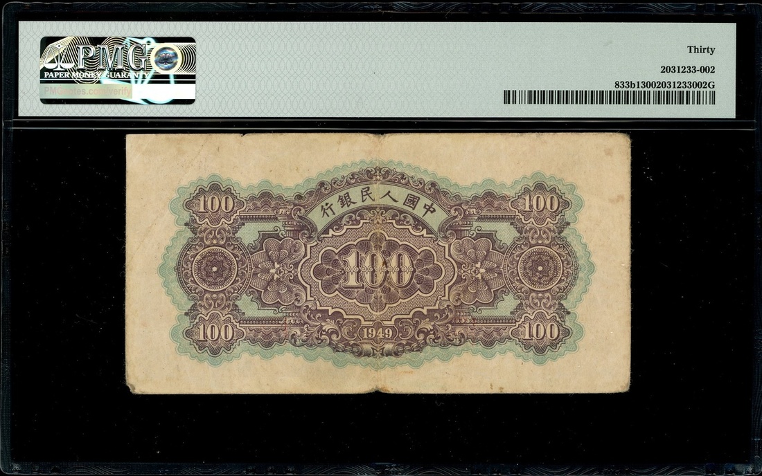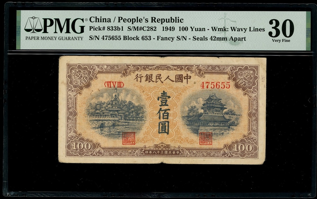 People's Bank of China, 1st series renminbi, 1949, 100 yuan, 'Yellow Bei Hai Bridge', wide seals, VI V III 475655,