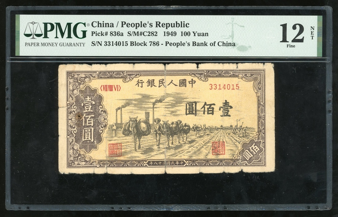 People's Bank of China, 1st series renminbi, 1949, 100 Yuan, 'Donkey Train', serial number VII VIII VI 3314015,