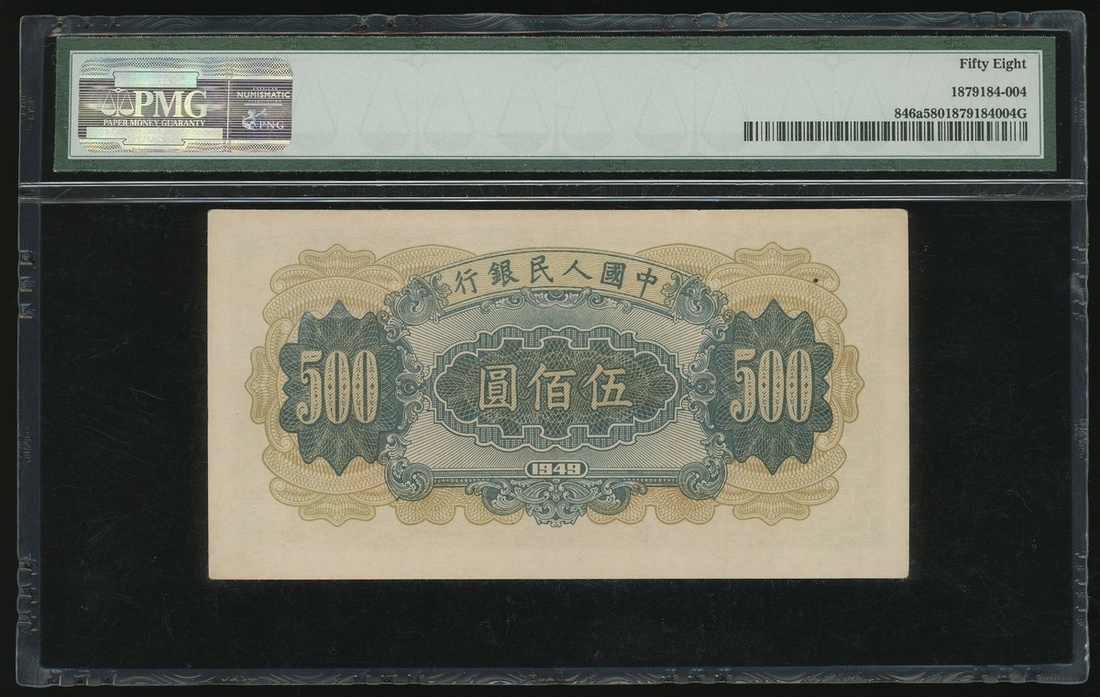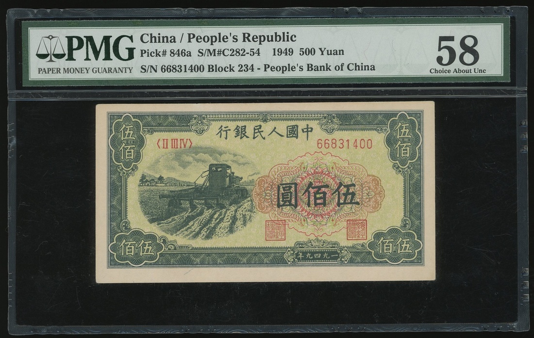 1949年中國人民銀行第一版人民幣500元「拖拉機」,編號II III IV 66831400,PMG 58