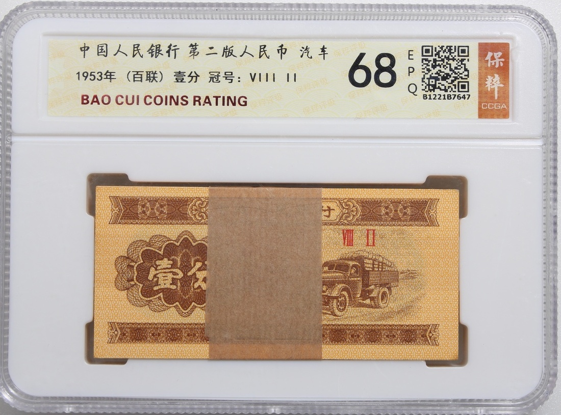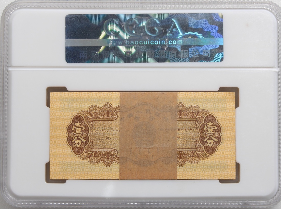 1953年中國人民銀行第二版人民幣1分100枚,羅馬字編號,受第三方評級公司認證,售後不設退換