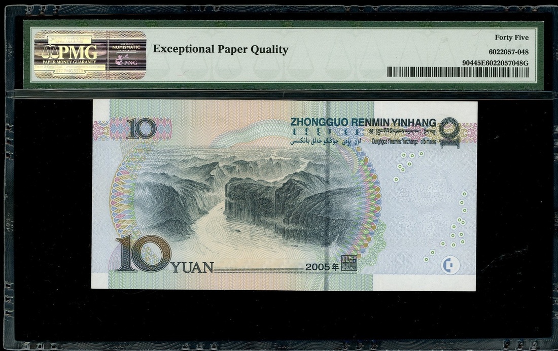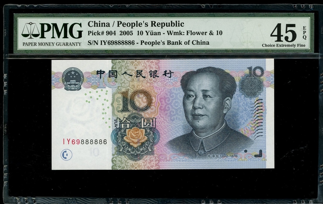 2005年中國人民銀行第五版人民幣10元,編號 IY69888886,PMG 45EPQ