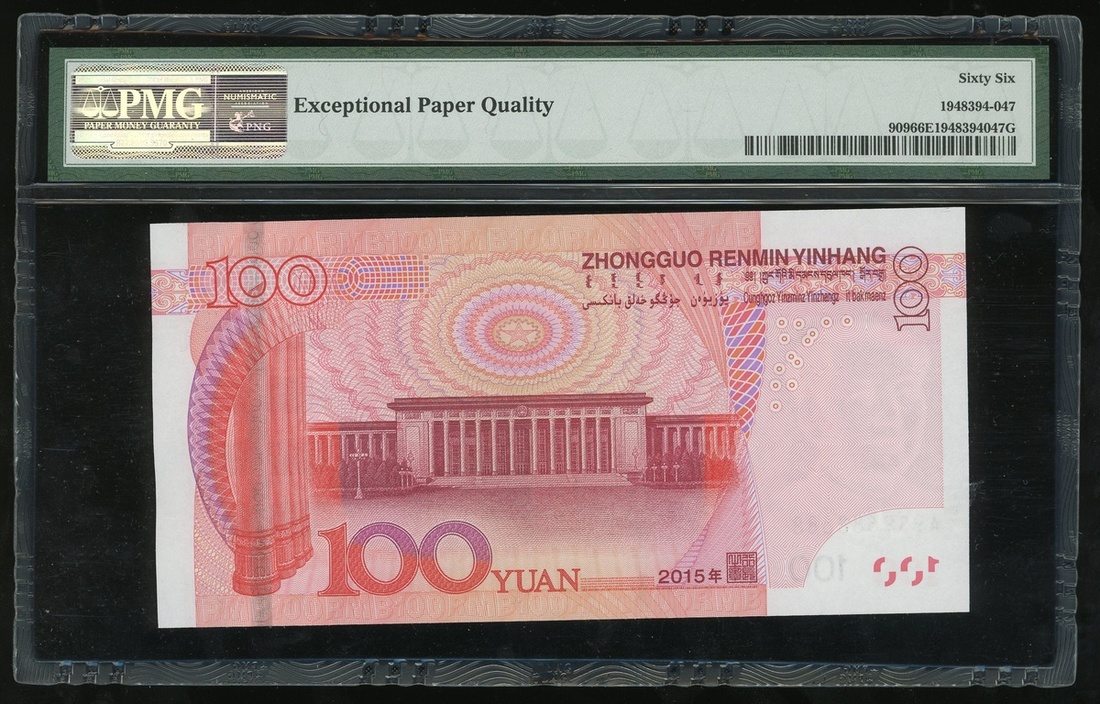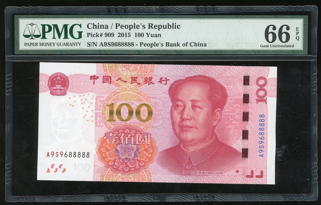 2015年中國人民銀行第五版人民幣100元,趣味號A9S9688888,PMG 66EPQ