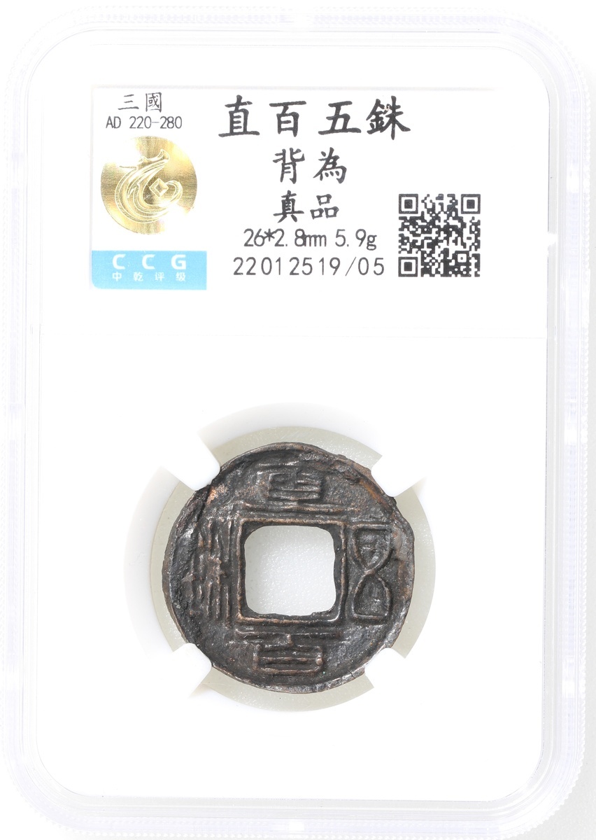 三國直百五銖背為,南北朝五行大佈各一枚,均經中乾評為真品